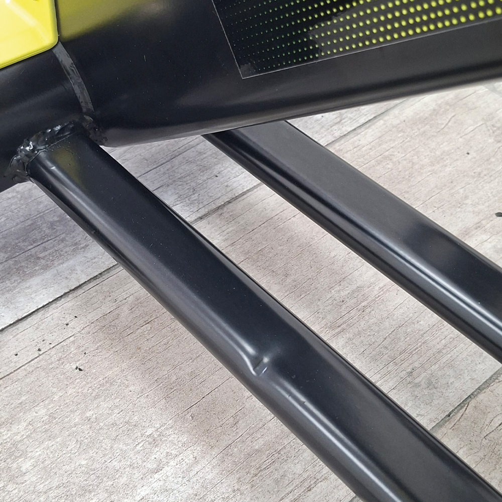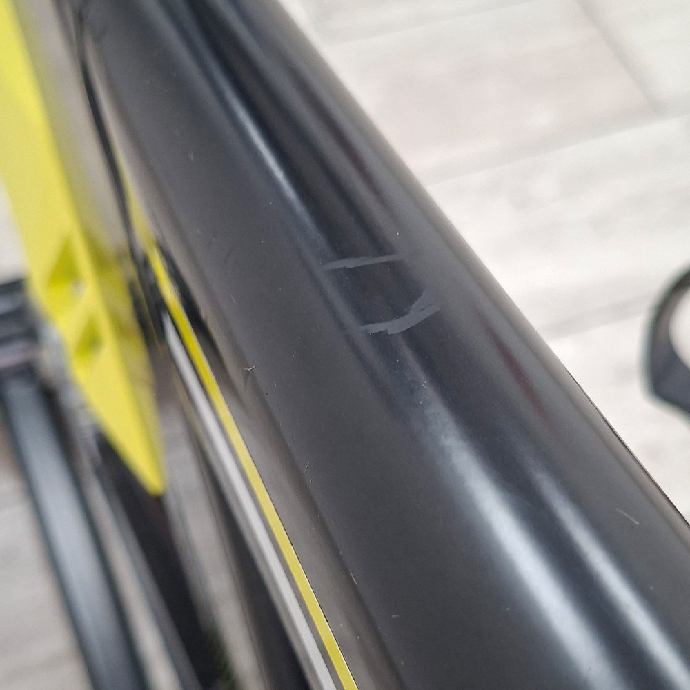 Le falta plástico amarillo del asiento, cuadro marcado, punteras amarillas marcadas.