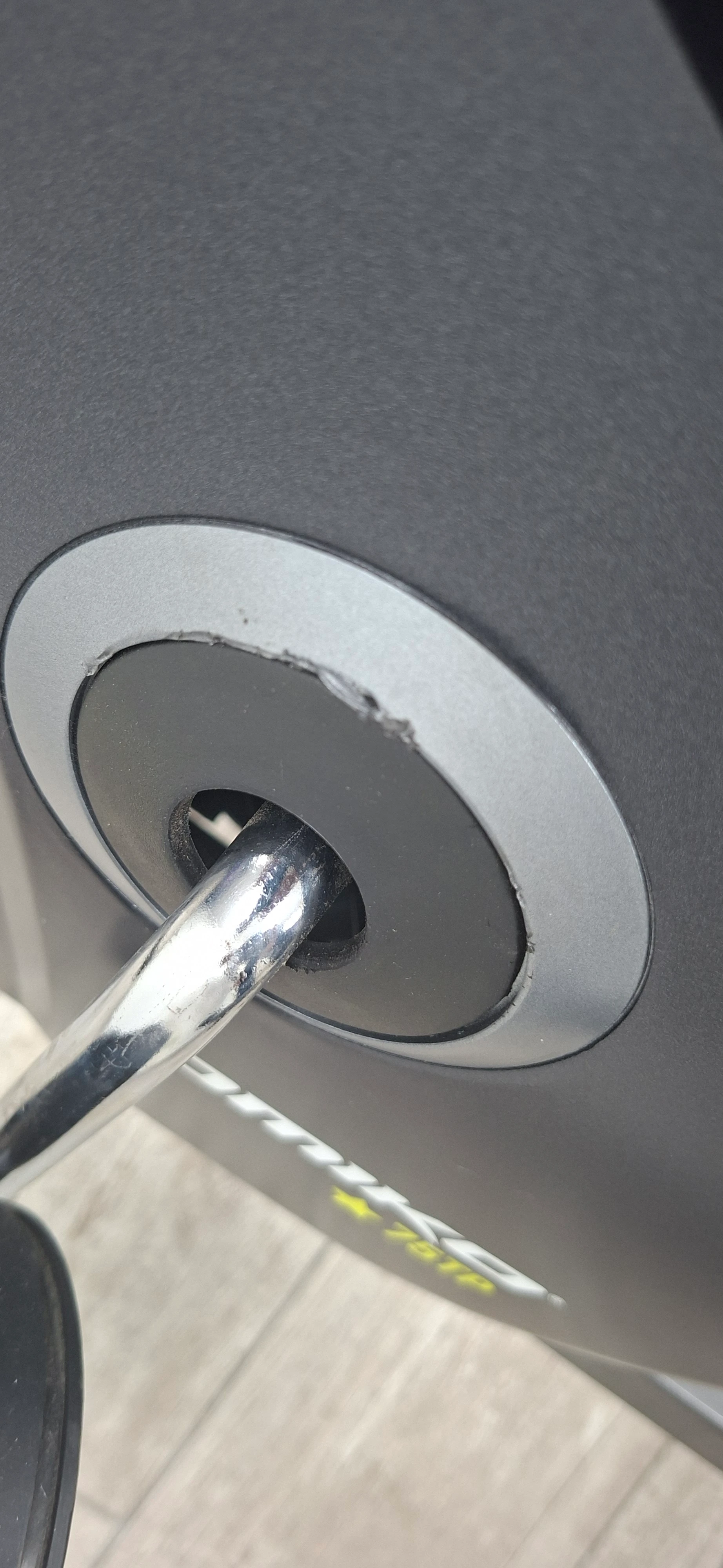 Cuadro y plásticos marcados. Display flojo producto de rotura en el plástico de agarre